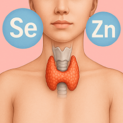 Селен и цинк — важные для правильной работы щитовидной железы микроэлементы. От них зависит выработка гормонов, которые оказывают влияние практически на всё: от функции сердца и ЖКТ до настроения, уровня энергии, состояния волос, ногтей и кожи.